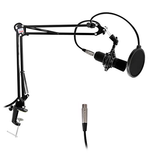 Suspension Microphone Boom Stand, Simple Clamp-Style Installation, Desktop Scissor Spring Arm Mic Stand w/ Shock Mount, Quick Setup & attached, Maximum Mic Arm Extension Dst= 2.26' ft.- Pyle (PMKSH01)
