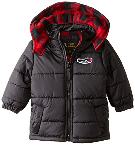 iXtreme Baby Boys' Cire Puffer with Buffalo Plaid, Black, 18 Months