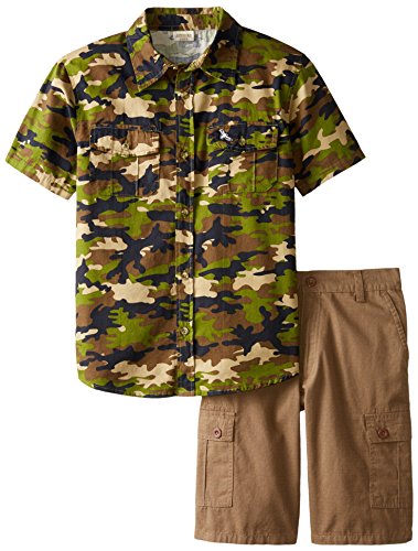 American Hawk Big Boys' Twill Camo Shirt with Rip Stop Cargo Shorts