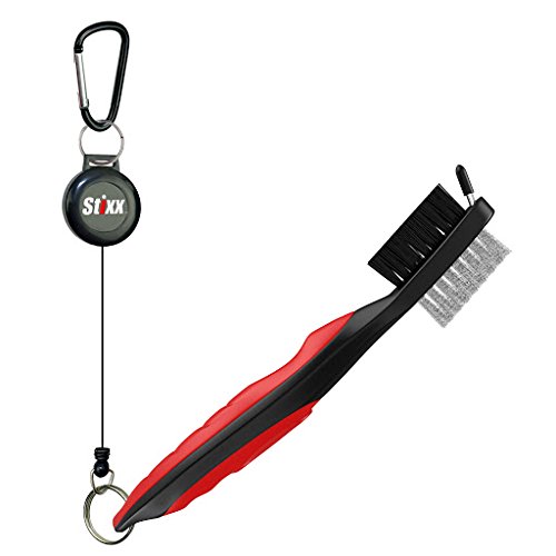 STIXX Golf Brush and Groove Cleaner with Retractable Clip, Extends 2 Ft. Brass, Nylon and Spike Cleaning Tool