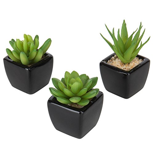 MyGift Set of 3 Modern Home Decor Mini Succulent Artificial Plants with Square Black Ceramic Pots