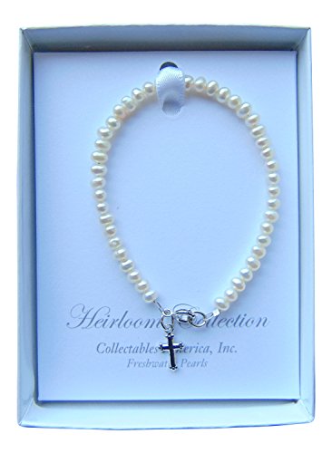 Anny's Girl's Freshwater Pearl Bracelet with Rhodium Cross Charm