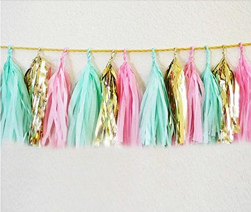 12 X Originals Group Mint Tissue Paper Tassels Garland Bunting Pom Pom for Party Wedding Gold