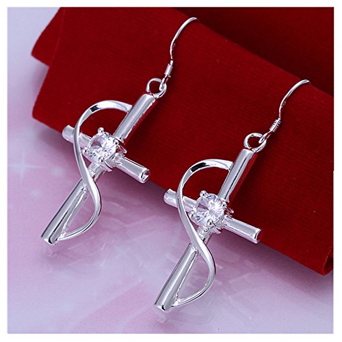 NYKKOLA Hot Classic 925 Solid Silver Jewelry Fashion Crystal Cross Pendant Hook Earrings