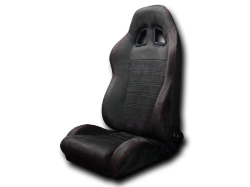 R&L Racing Seats JDM Universal Racing Seats Fully Reclinable Black Suede Red Stitch with Sliders