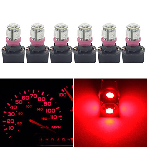 HERCOO Pack of 6 Instrument Speedometer T10 194 PC168 PC195 5-5050-SMD LED Light Bulbs + Twist Lock Sockets - Red