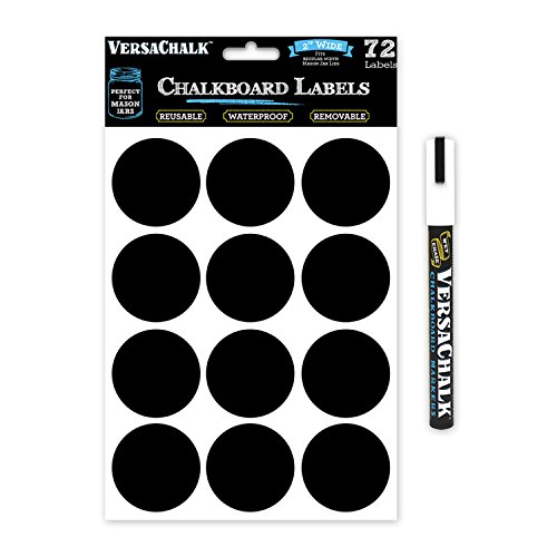 Black Vinyl Chalkboard Kitchen Pantry Labels for Canning, Mason or Spice Jars - Best Chalk Board Stickers for Liquid Chalk Ink (Round 2.0 Inches)