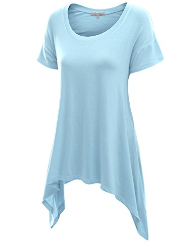 Doublju Basic Short Sleeve Long Asymmetrical Tunic Tops for Women with Plus Size SkyBlue 3XL