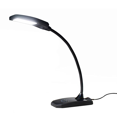 Emopeak LED Desk Lamp, 5W USB Rechargeable Reading Light with Mood Light on Base, 3 Levels Brightness, Touch Sensor Control for Study, Bedroom, Office (Desk LED-Black-3W)