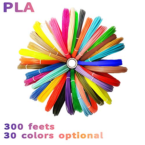 7TECH 3D Pen/Printing/Drawing Pen Filament Refills PLA 1.75mm 30 colors, 300 Feet with 280 Stencil E-book (wood,silver,gold,copper,6 Fluo,20 Common),High-Precision Diameter Filament for Tecboss Nulaxy