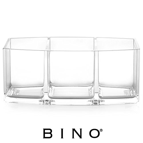BINO 'Keep It Simple' 3 Compartment Acrylic Makeup Brush Holder, Clear and Transparent Makeup Brush Organizer Cosmetic Makeup Holder Vanity Make-Up Brush Holder Organizer Beauty Brush Organizer