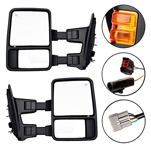 DEDC Towing Mirrors For 1999-2007 Ford Super Duty F250 F350 F450 Side Mirror Pair Power Heated With Signal Light (Upgrade to 08 Superduty Retrofit) 1999 2000 2001 2002 2003 2004 2005 2006 2007