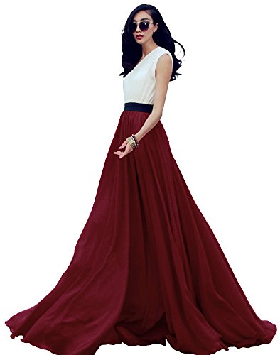Urban CoCo Women's Summer Chiffon Mopping Floor Length Big Hem Solid Beach Maxi Skirt