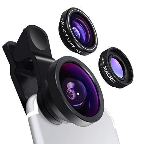 Cell Phone Camera Lens - Yarrashop 3 in 1 HD Clip-On Lens Kit for 180 Degree Fisheye Lens + 0.4X Wide Angle Lens + 10X Macro Lens for iPhone Xs Max/XR Samsung Huawei LG and Other Smartphone (Black)