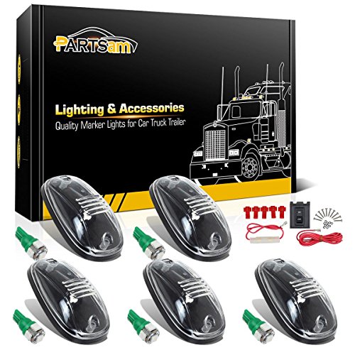 Partsam (5 Roof Running Clear Lens 822072AC Cab Marker Light + 5X 5-5050-SMD 2825 194 168 Green LED Bulb + Wiring Pack Compatible with Dodge Ram 1500 2500 3500 4500 5500 2003-2018 Pickup Trucks