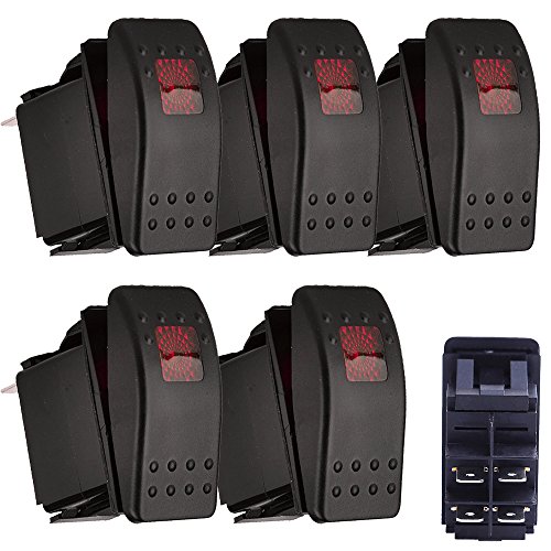 ESUPPORT Car Marine Red LED Toggle Switch Dash 4pin Pack of 5