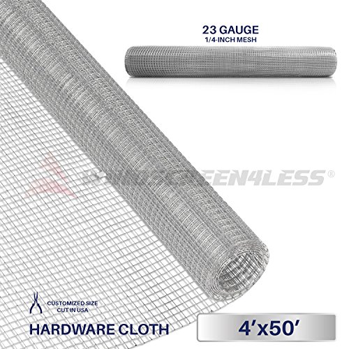 Windscreen4less 23 Gauge 1/4 Inch Square Galvanized Mesh Hardware Cloth 48-Inch Tall Custom Size Cut-to-Length 4ft x 50ft