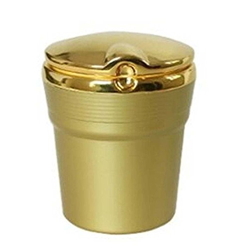 FICBOX® Portable Stainless Auto Car Cigarette Ashtray Ash with Blue LED Light Smokeless Stand Cylinder Cup Holder (Gold)