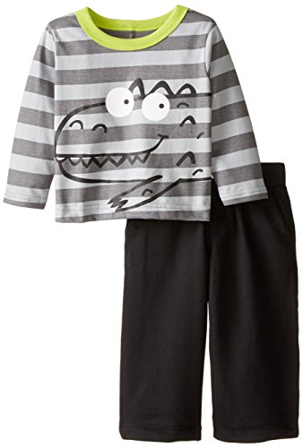 Gerber Graduates Baby Boys' Grey Dino Long Sleeve Top and Black Pant Set, Grey Dino, 18 Months