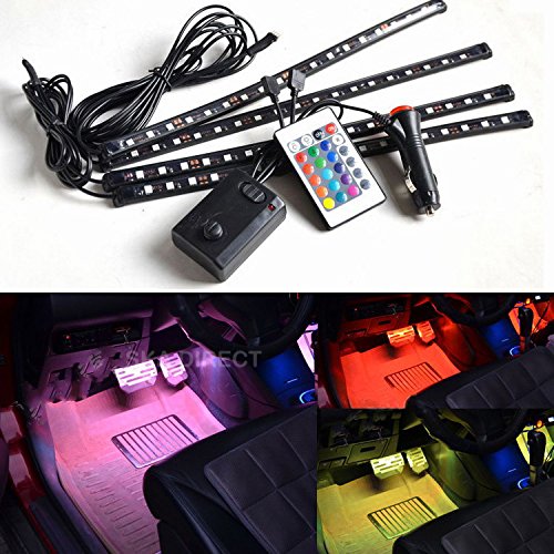 Ska Direct 4pc. Multi-Color 7 Color LED Interior Underdash Lighting Kit, with Sound Active Function and Wireless Remote Control