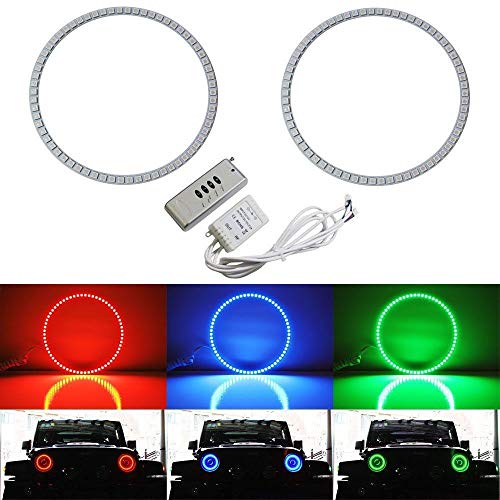 iJDMTOY 132-LED RGB Multi-Color LED Angel Eyes Halo Rings For Jeep Wrangler JK (Also fit any car with 7-Inch headlights)
