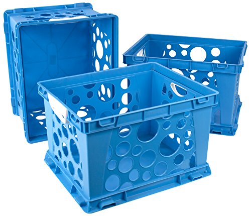 Storex Large Storage and Filing Crate with Comfort Handles, 17.25 x 14.25 x 10.5 Inches, Blue/White, Case of 3 (STX61767U03C)