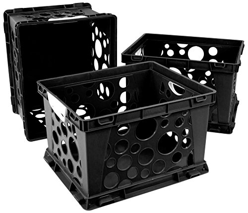 Storex Large Storage and Filing Crate with Comfort Handles, 17.25 x 14.25 x 10.5 Inches, Black/White, Case of 3 (STX61788U03C)