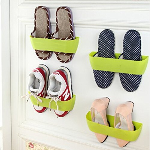 Creative Plastic Wall Mounted Shoes Rack for Entryway Over the Door Shoe Hangers Organizer Hanging Shoe Storage Solutions Racks with Foam Tape, Green (Set of 4)