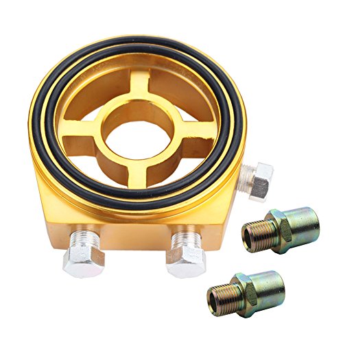 Dewhel Racing Sport JDM Aluminum Oil/Gauge Filter Sandwich Adapter Plate Kit Color Gold