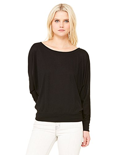 Bella + Canvas Womens Flowy Long-Sleeve Off Shoulder T-Shirt (8850)- BLACK,2XL
