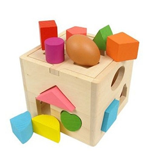 Baby Kids Wooden Square Shape Sorter Cube First Blocks Sorting Early Learning Toy Set Box for 3 Year Old Gift
