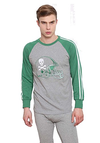 Men's Long Sleeve Pajama Top with Crew Neck (2XS, Green)