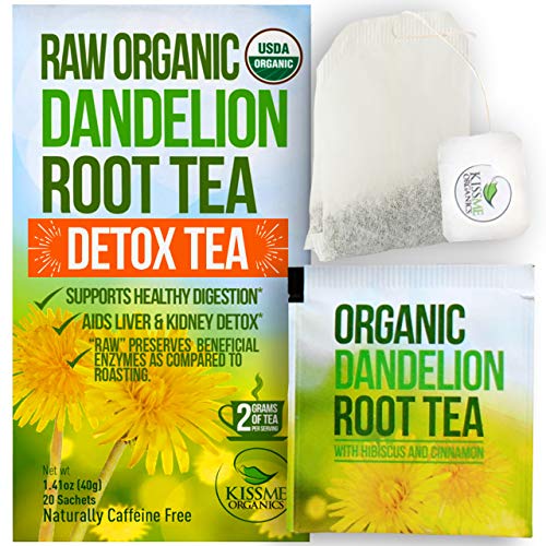 Dandelion Root Tea Detox Tea - Raw Organic Vitamin Rich Digestive - 1 Pack (20 Bags, 2 grams each) - Helps Improve Digestion and Immune System - Anti-inflammatory and Antioxidant