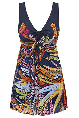 Wantdo Women's Swim Dress Fashion Swimsuit One Piece Dress Feather L US 6-8