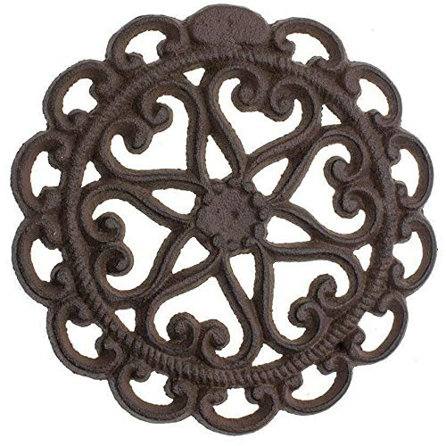 Cast Iron Trivet | Round with Vintage - Pattern Decorative Cast Iron Trivet For Kitchen Or Dining Table - 6" Diameter - With Rubber Pegs - Rust Brown Color - by Comfify CA-1504-08-BR