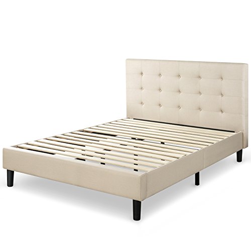 Zinus Ibidun Upholstered Button Tufted Platform Bed / Mattress Foundation / Easy Assembly / Strong Wood Slat Support, Queen