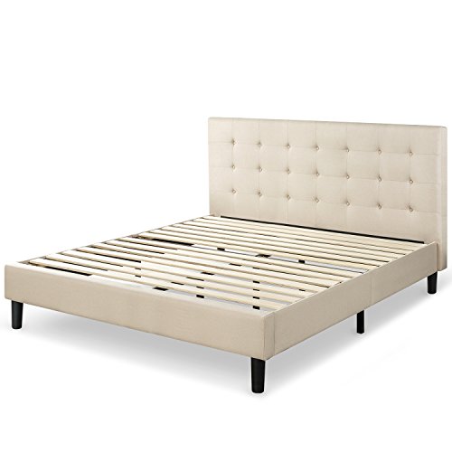 Zinus Ibidun Upholstered Button Tufted Platform Bed / Mattress Foundation / Easy Assembly / Strong Wood Slat Support, King