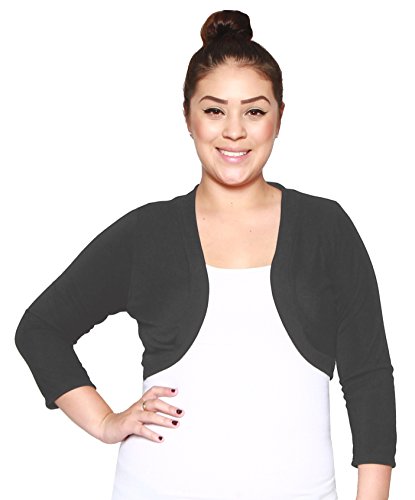 Libian Jr Plus Size 3/4 Sleeve Cropped Bolero Shrug (3X, Grey)