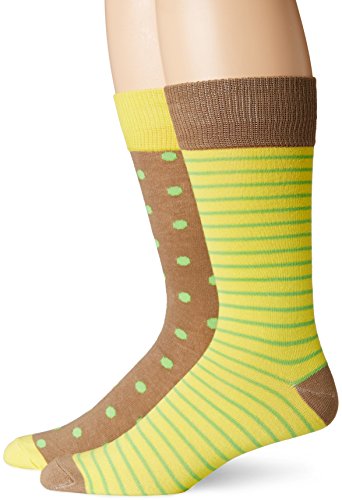 English Laundry Men's Polka Dot and Stripe Crew Socks (Pack of Two Pairs), Khaki, Shoe Size 6 1/2-12