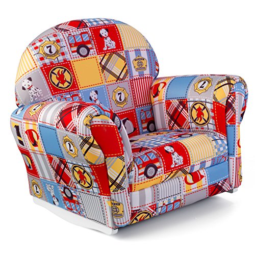 KidKraft Upholstered Rocker with Slip Cover Toy, Firefighter Patchwork
