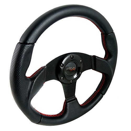 Spec-D Tuning SW-106RS 320MM Black Leather Red Stitch Sport Racing Steering Wheel