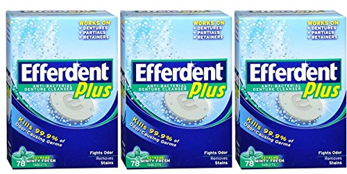 Efferdent Plus Anti-bacterial Denture Cleanser, Minty Fresh, 78 Count (Pack of 3)