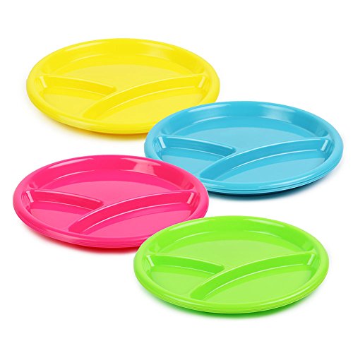 (12 Pack) 7-Inch 3 Compartment Reusable Hard Plastic Divided Plates, Small, 7"