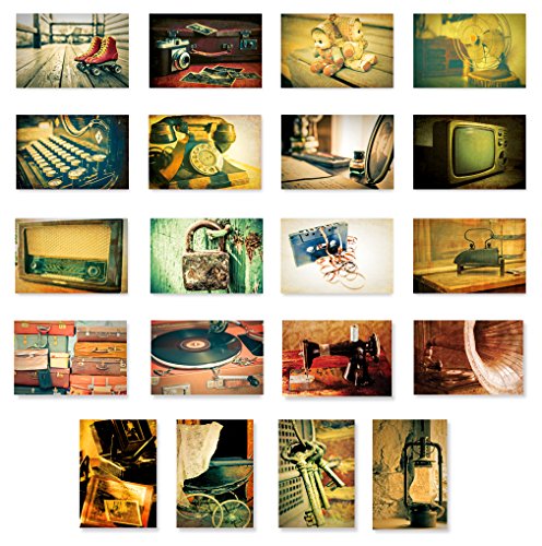 RETRO postcard set of 20 postcards. Antiques, old things, and nostalgia post card variety pack. Made in USA.