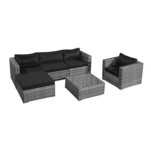 Giantex 6pc Patio Sofa Furniture Set Pe Rattan Couch Outdoor Steel Cushioned Gray