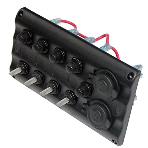 Amarine Made 4 Gang LED Waterproof Marine Boat Toggle Switch Panel with 5 Breakers, with 2 Power Socket