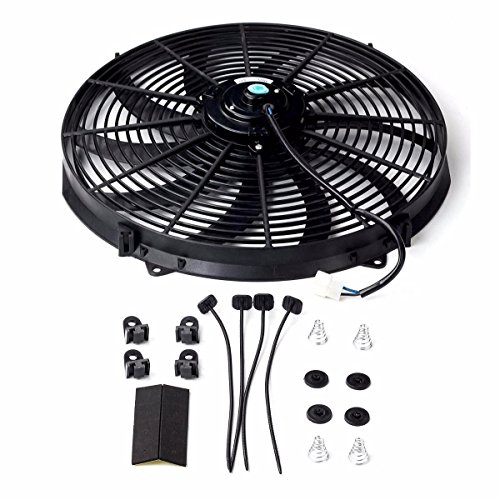 BETTERCLOUD Universal Slim Fan Push Pull Electric Radiator Cooling 12V 80W Mount Kit (Black, 16")