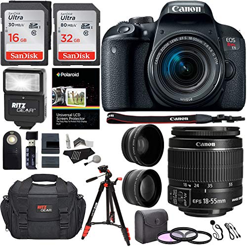 Canon EOS Rebel T6i 24.2 MP DSLR Camera, 18-55mm f/3.5-5.6 STM Lens, RitzGear HD .43x Wide Angle & 2.2X Telephoto Lenses, 48 GB SDHC Memory + 48" Tripod, 58mm Filter Kit, Bag and Accessory Bundle