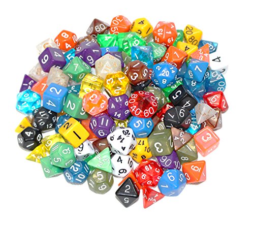 100+ Pack of Random Polyhedral Dice in Multiple Colors | At Least 15 Complete Sets | 4 Sided, 6 Sided, 8 Sided, 10 Sided, 12 Sided, 20 Sided and Percentile Dice Included |At Least 15 Color | Large Durable Velvet & Satin Dice Bag Included