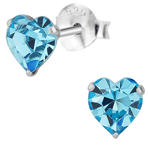 Hypoallergenic Sterling Silver Aquamarine Crystal Heart Stud Earrings for Kids (Nickel Free)